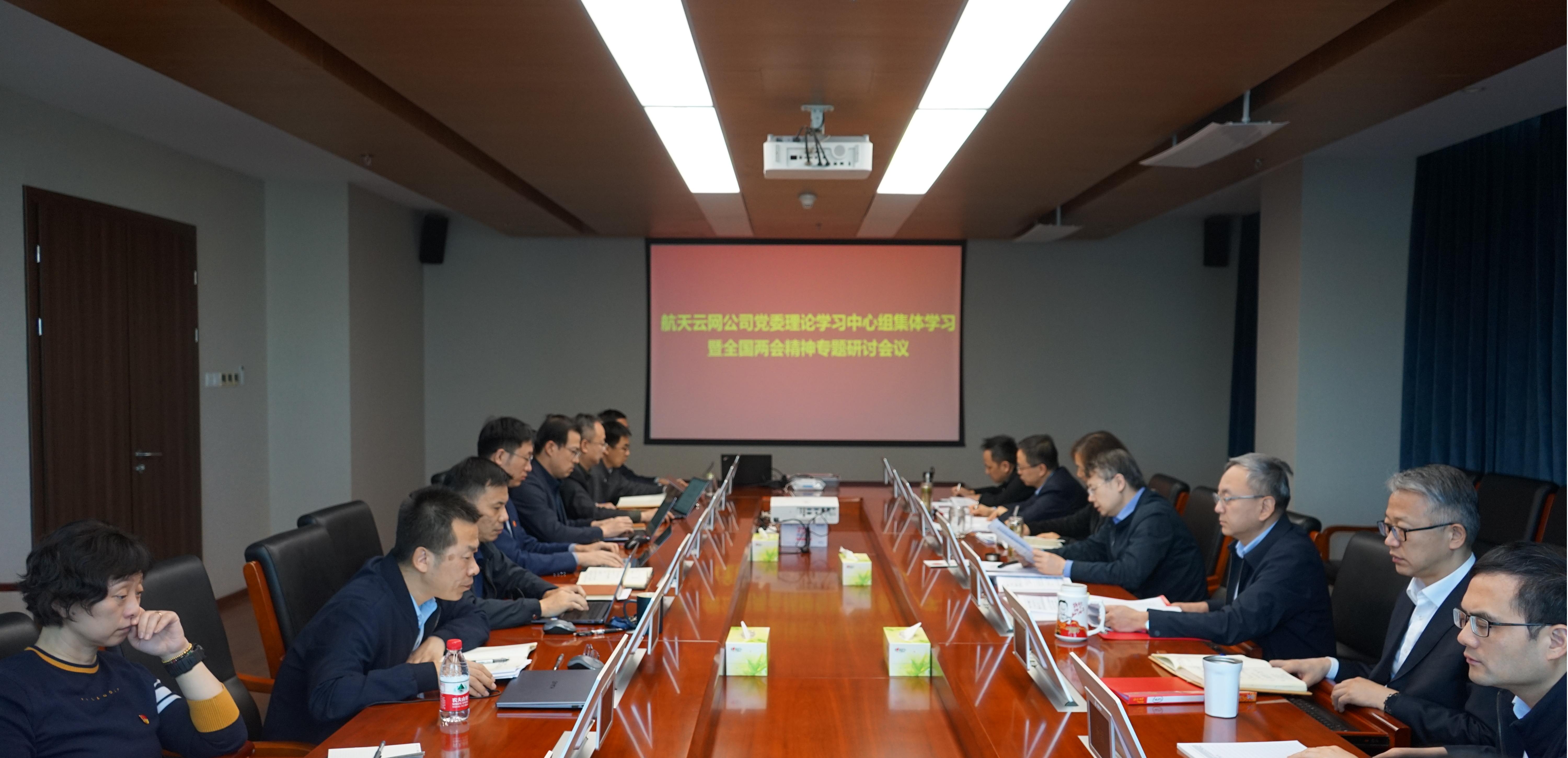 3月18日,航天云网公司党委开展理论学习中心组集体学习暨全国两会精神专题研讨会,深入学习习近平总书记在全国两会期间的重要讲话精神和2025年政府工作报告精神,并对习近平总书记关于保密工作的重要讲话和重要指示批示以及上级有关精神等进行集中学习,结合航天云网公司改革发展现状,围绕深入学习贯彻全国两会精神开展专题研讨,研究贯彻落实党中央战略部署和集团公司党组决策要求的落地举措。航天云网公司党委书记、董事长李曙春主持会议并作总结讲话,全体领导班子成员、总经理助理、本部各部门负责人、京区所属单位负责人参加会议。